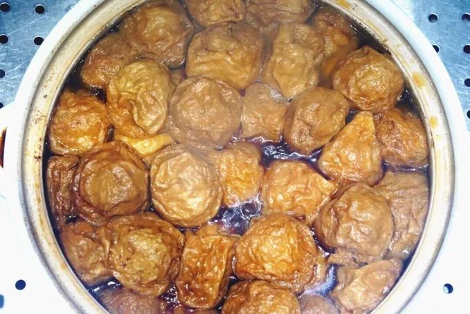 肉詰めの油揚げ(肉醸面筋)は、母が作る団らんの味の定番だ。無錫特産の「清水油面筋」に穴を開け、肉だねをぎっしりと詰め込む。甘辛く煮絡めることで、面筋が旨みたっぷりのタレを吸い込み、一口頬張れば、面筋の弾力、肉だねの旨み、そして甘じょっぱい煮汁が口の中で一体となる。これさえあれば、ご飯をもう二杯はおかわりできる。
