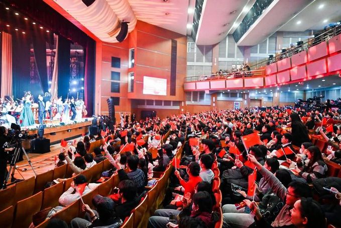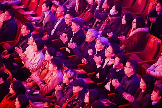 中国伝媒大学の廖祥忠党委書記、張紹華党委副書記、鄭鵬党委副書記兼規律検査委員会書記、李新軍、楊懿、柴剣平、任孟山各党委常務委員兼副学長、徐紅梅党委常務委員兼組織部長、金煒学長補佐らが教職員や学生たちと共に公演を鑑賞し、新年の到来を迎えた。