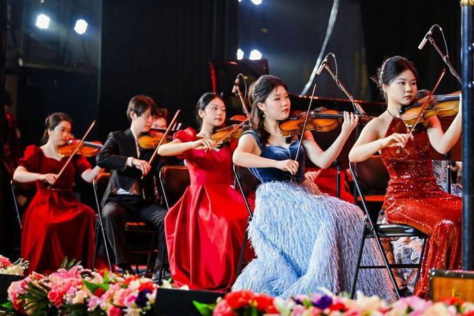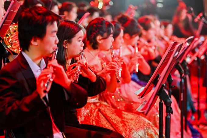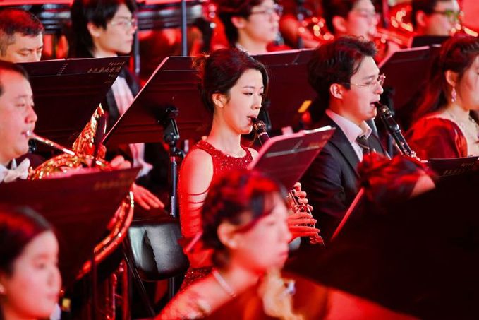 コンサートは中国と海外の古典を融合させ、時代精神を貫き、荘重でありながら感動的だった。コンサートは二部構成で行われた。前半は中国と海外の古典交響作品を主軸とし、「ラコッツィ行進曲」、「威風堂々」、「ファランドール」、「ルスランとリュドミラ序曲」、「鍛冶屋のポルカ」、「シャンパン・ポルカ」、「コッペリア」からの抜粋、そして「バッカナール」を順に披露し、荘重で明朗、熱烈な音響の層で交響芸術の様式的な魅力を表現した。
