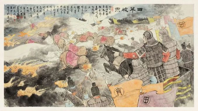 戦国時代の末期、燕の軍勢は斉の七十余りの城を陥落させ、残るは即墨という孤立した一城のみとなった。城内の老若男女は、死を賭して降伏しないことを誓った。深夜、千頭もの屈強な牛の尾に油脂を注ぎ、角には鋭い刃を縛り付け、火龍のごとく敵陣へと突進させた。五千人の勇士がその後に続き、叫び声は天を揺るがした。