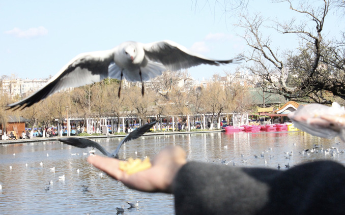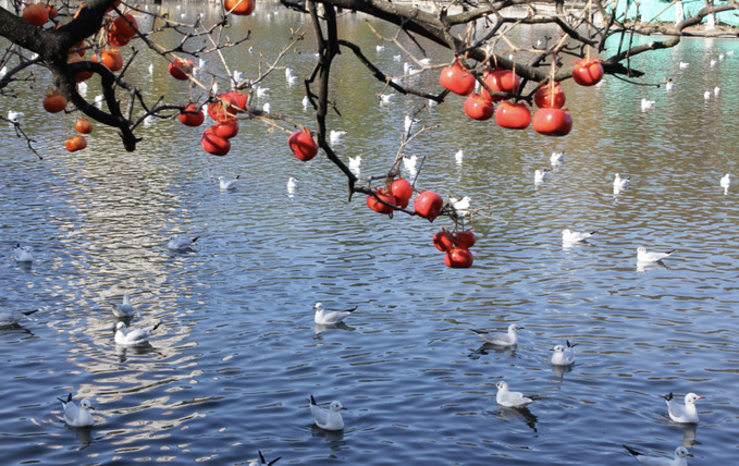 ▲滇池のほとりに集うユリカモメ